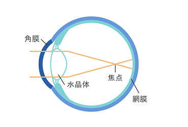 眼は入ってきた光を角膜と水晶体で屈折させて、網膜上で焦点を合わせることにより像として捉えます。